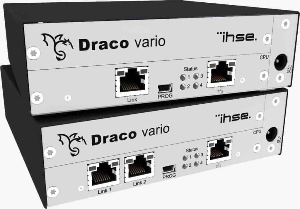 The Draco tera IP Gateway provides IHSE KVM users with the ability to bridge multiple KVM matrices over existing IP networks within buildings, across campuses and between remote corporate offices.