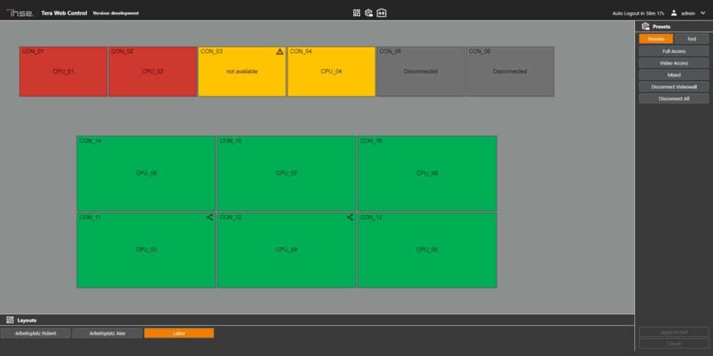 Visually manage the KVM system’s connections and apply preset configurations to multiple workstations.