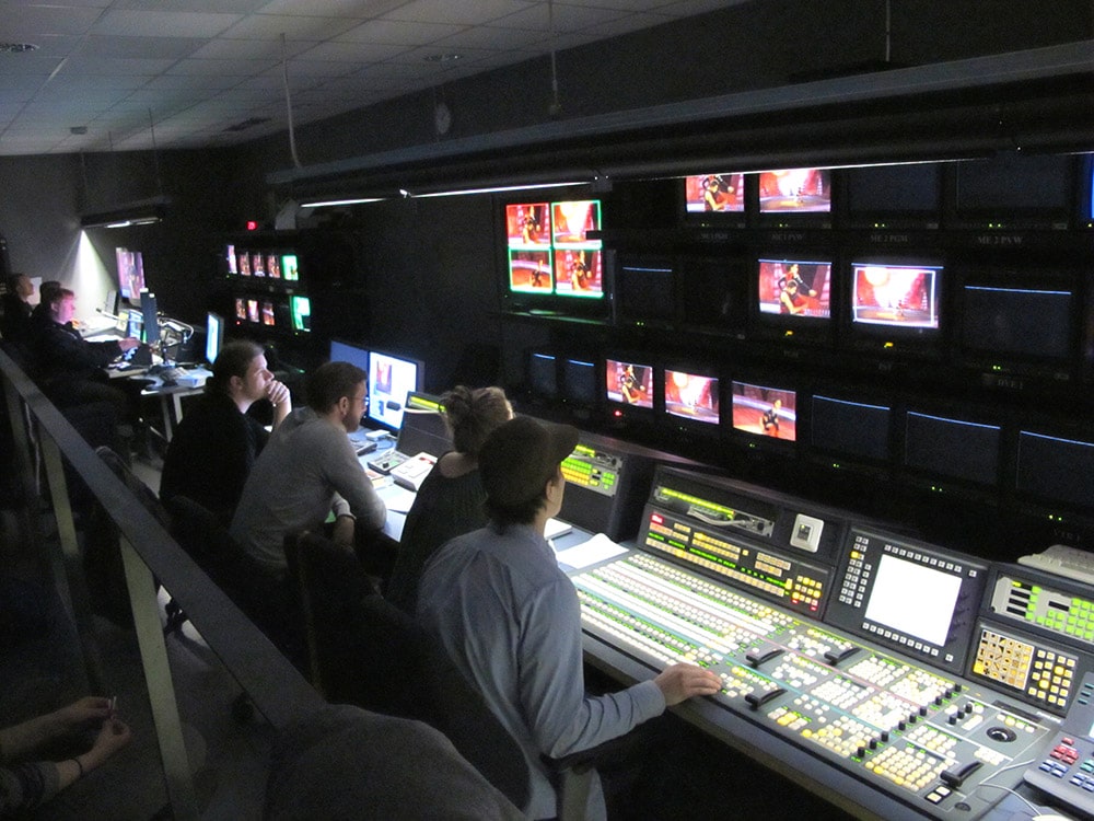 Die Anzahl der Studiomitarbeiter und Studenten variiert in den verschiedenen Kursen und es ist sehr praktisch, dass eine Person über den Draco-Matrixswitch mehrere Computer bedienen und Aufgaben ausführen kann bzw. in größeren Produktionen mehrere Leute diese Aufgaben auf verschiedene Steuerungsplätze aufteilen können.