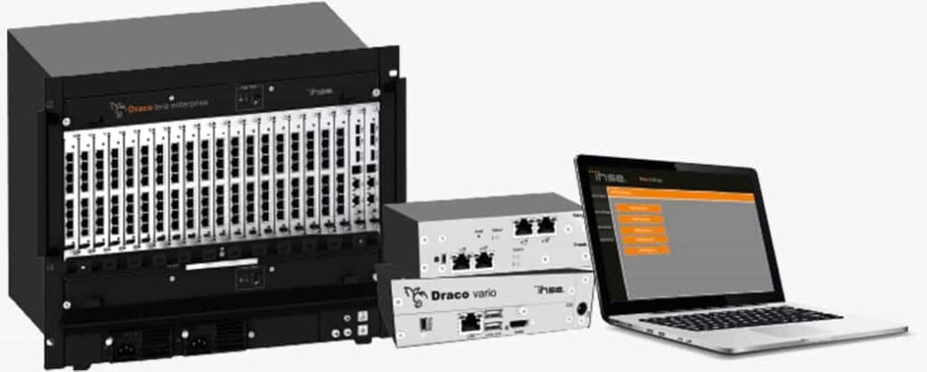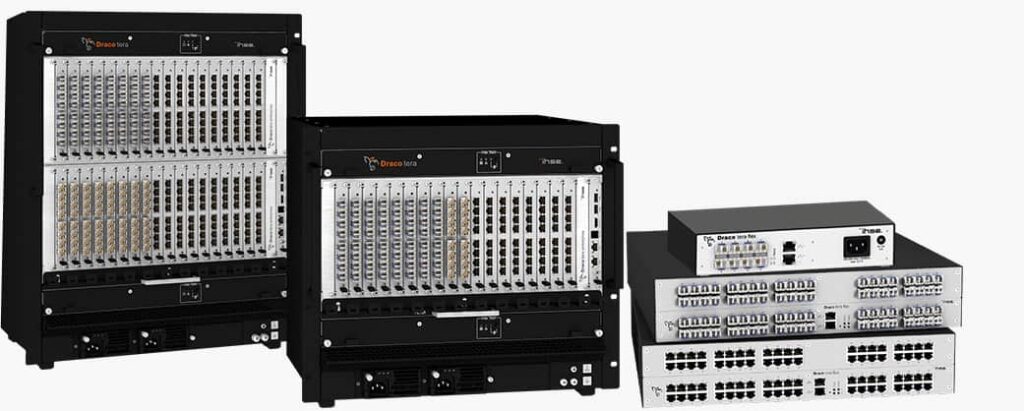 Der Draco tera compact mit 8 Ports ist ein Matrixswitch, der sich besonders für kleinere und mittlere Installationen eignet. Mit Glasfaser- und Cat-X-Anschlüssen bietet er hohe Leistung zu einem attraktiven Preis.