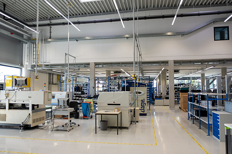 The production space in the new building covers 1,300 m². It is flooded with daylight, providing the staff with a very good working environment. Air conditioning and underfloor heating also ensure comfort.