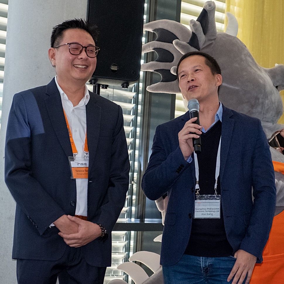 Terence Teng, CEO of IHSE ASIA, and Alan Wang from the Chinese sales partner Guangzhou Mediacomm