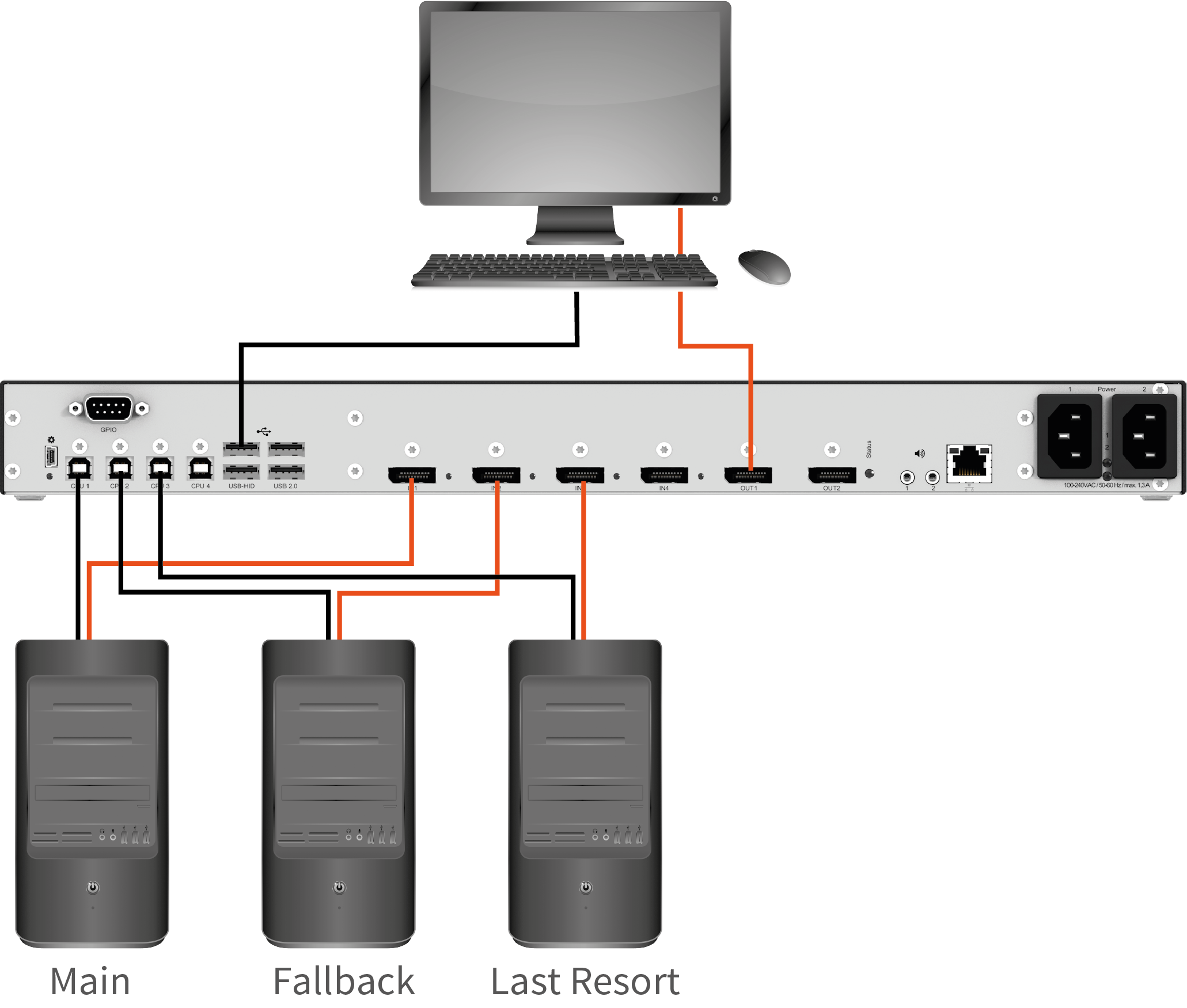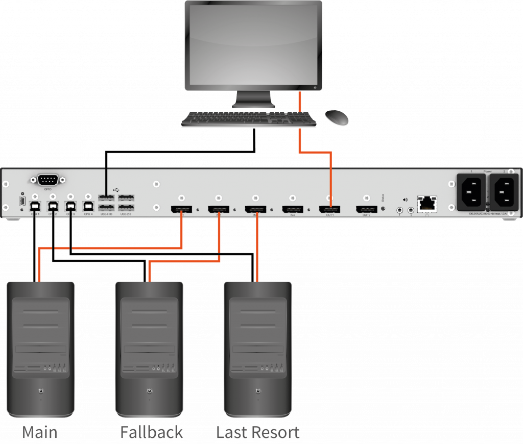 Das Umschalten zwischen den Videoquellen lässt sich einfach und in Echtzeit per Mausbewegung auf den gewünschten Inhalt durchführen, alternativ per Tastaturkommandos oder mit externen Tastern. Zum Anschluss der Taster steht eine GPIO-Schnittstelle zur Verfügung.