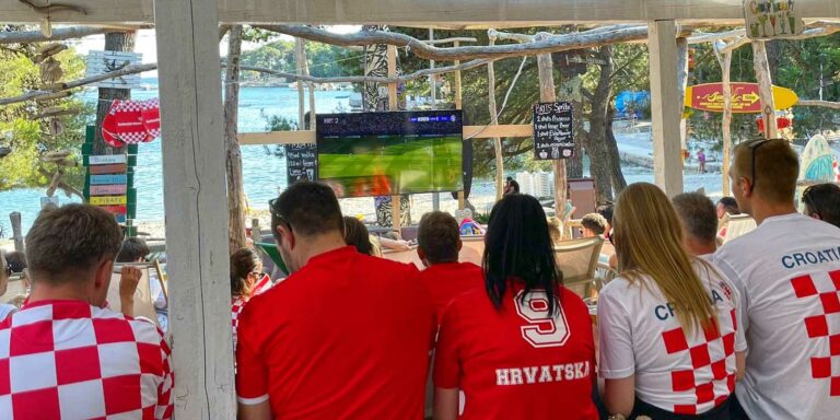 Sitting relaxed by the sea at a beach bar, enjoying a cool drink and watching the European Championship games live...