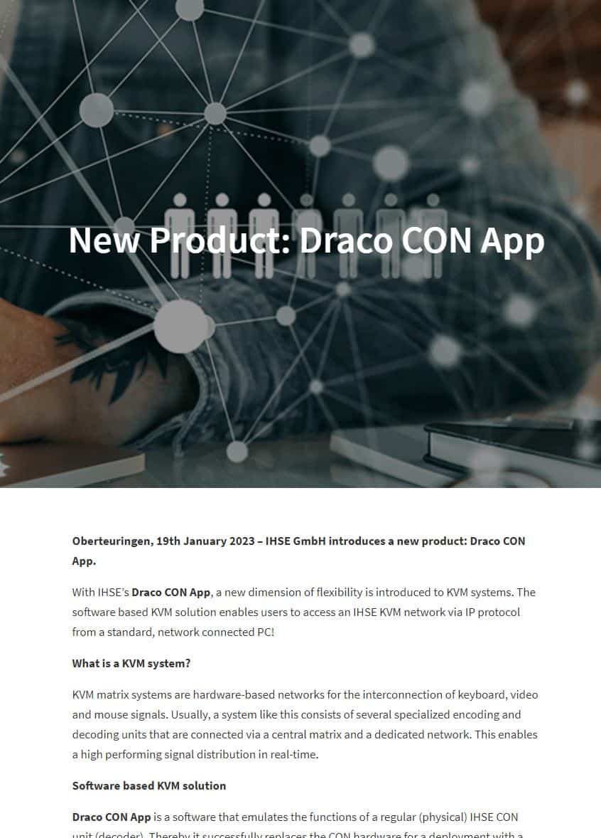 The Draco CON App is a client software for KVM access over IP.