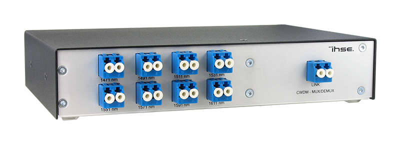 Draco CWDM multiplexers minimize the total number of long interconnection cables and cabling effort. CWDM (Coarse Wavelength-Division Multiplexing) is a technology which multiplexes a number of optical fiber signals onto a single optical fiber by using different wavelengths. Using specific SFP modules (small form-factor pluggable) the bidirectional passive optical pair of multiplexer and demultiplexer allows up to 4, 8 or 18 different wavelengths to pass through a single optical single-mode fiber channel.