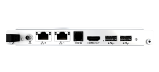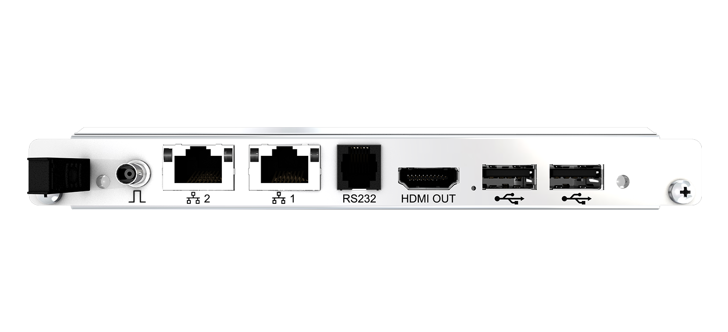 DisplayPort, HDMI, DVI-D, DVI-I, USB 2.0, USB-HID, RS232, RS422, analog / digital or balanced audio