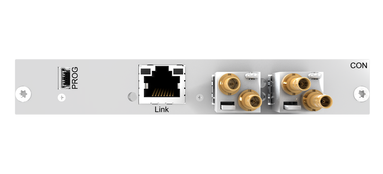 For greatest flexibility in application, the SDI extender module can be equipped with two coax SFP modules, each with two channels. SFP modules are available to suit dual input and dual output configurations.