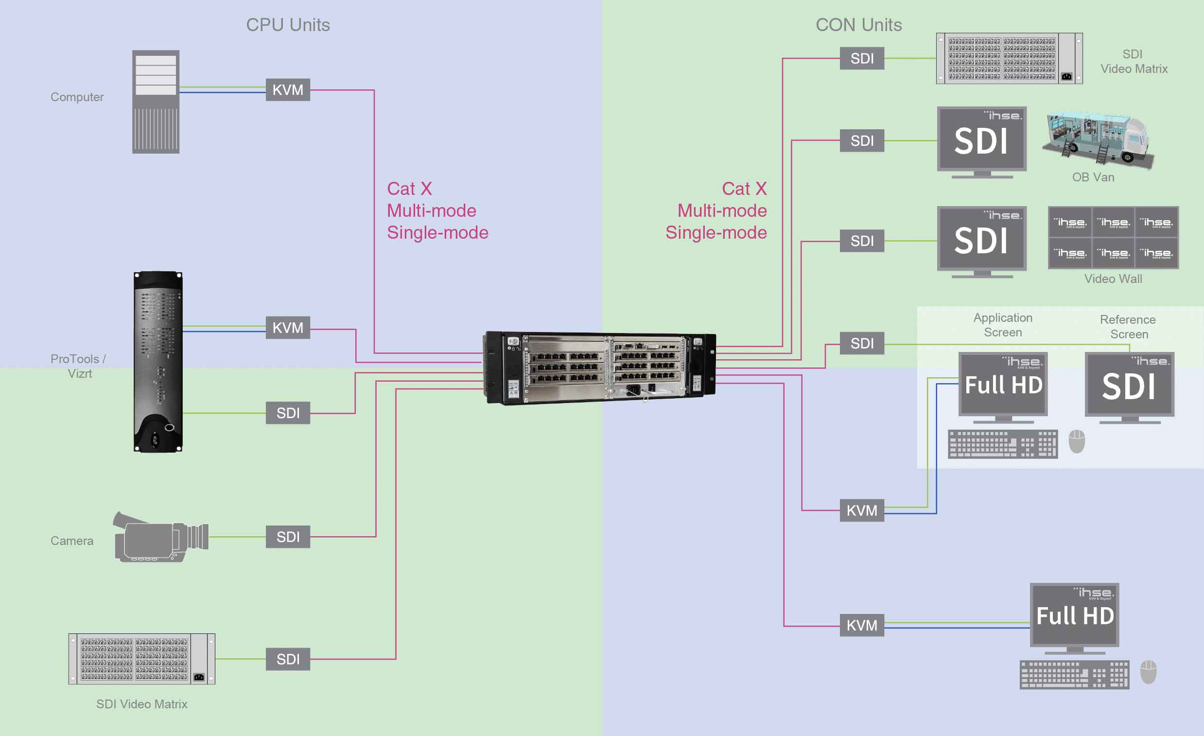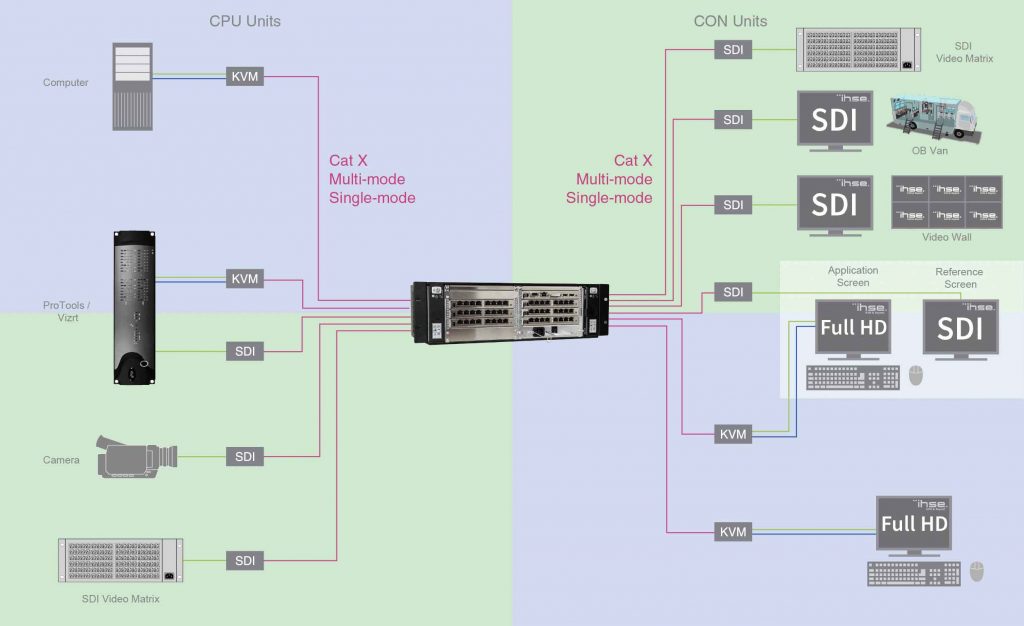 CPU module, 2x Cat X (redundant), 1x SDI monitor