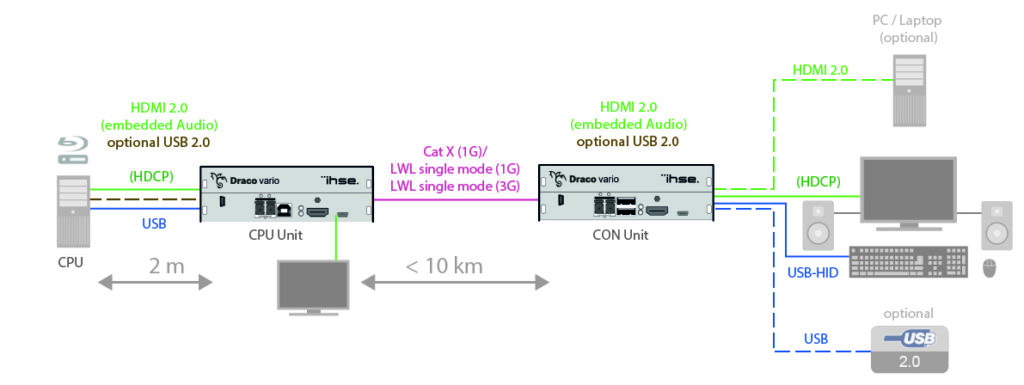 • Local input at CON side (micro HDMI) with integrated switching functionality