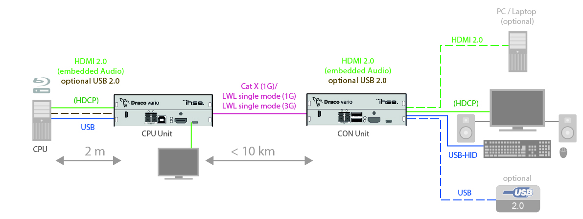 Draco vario XS CON unit , HDMI2.0, 4K60, 1x USB HID , video input/switch, 1x fiber 3G