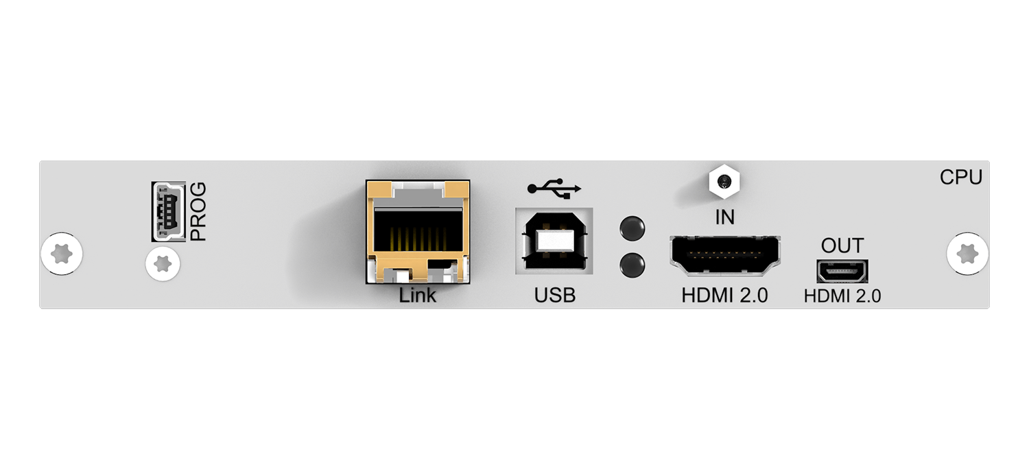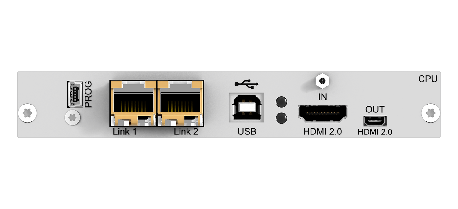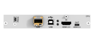• Operation of CPUs from a remote workstation with a HDMI 2.0 monitor and USB-HID devices