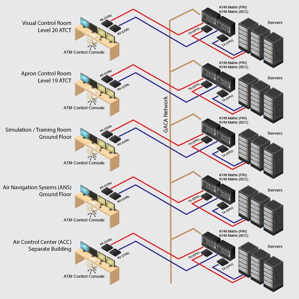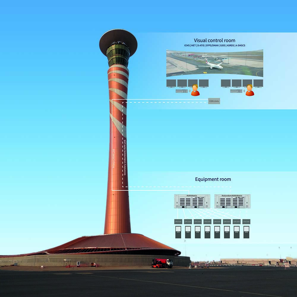 Thanks to the centralization of ATC for the towers and other services including MET, DMAN, AMAN, training and simulation, and technical supervision, the KVM system enables maximum efficiency and productivity while providing a more flexible working environment for air traffic controllers, technicians and managers.
