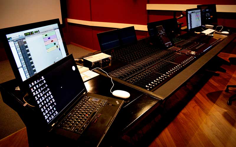 Mixing studios for picture and sound are constructed to a very high standard to ensure that unwanted noise does not adversely affect the creative process. Limited space means that only essential equipment is fitted within the studio and several people will often work together in the confined area, each requiring access to specific tools.