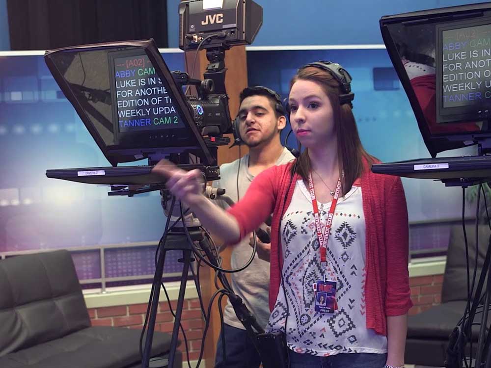 Station NHSTV is part of the district’s Creative Media Production (CMP) academy, giving students an immersive experience and complete introduction to the world of professional broadcasting. The CMP academy is one of eight such programs running at four high schools, each one designed to give students a deep dive into disciplines they’re considering for their professional careers. In its 10th year at Northwest High School in suburban Fort Worth, the CMP academy focuses on television broadcast, filmmaking, graphic design and illustration, and commercial photography.