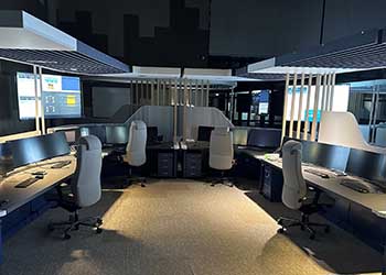 The KVM switch also handles content routing of live data and security CCTV camera images to the large videowall at the front of the control room.