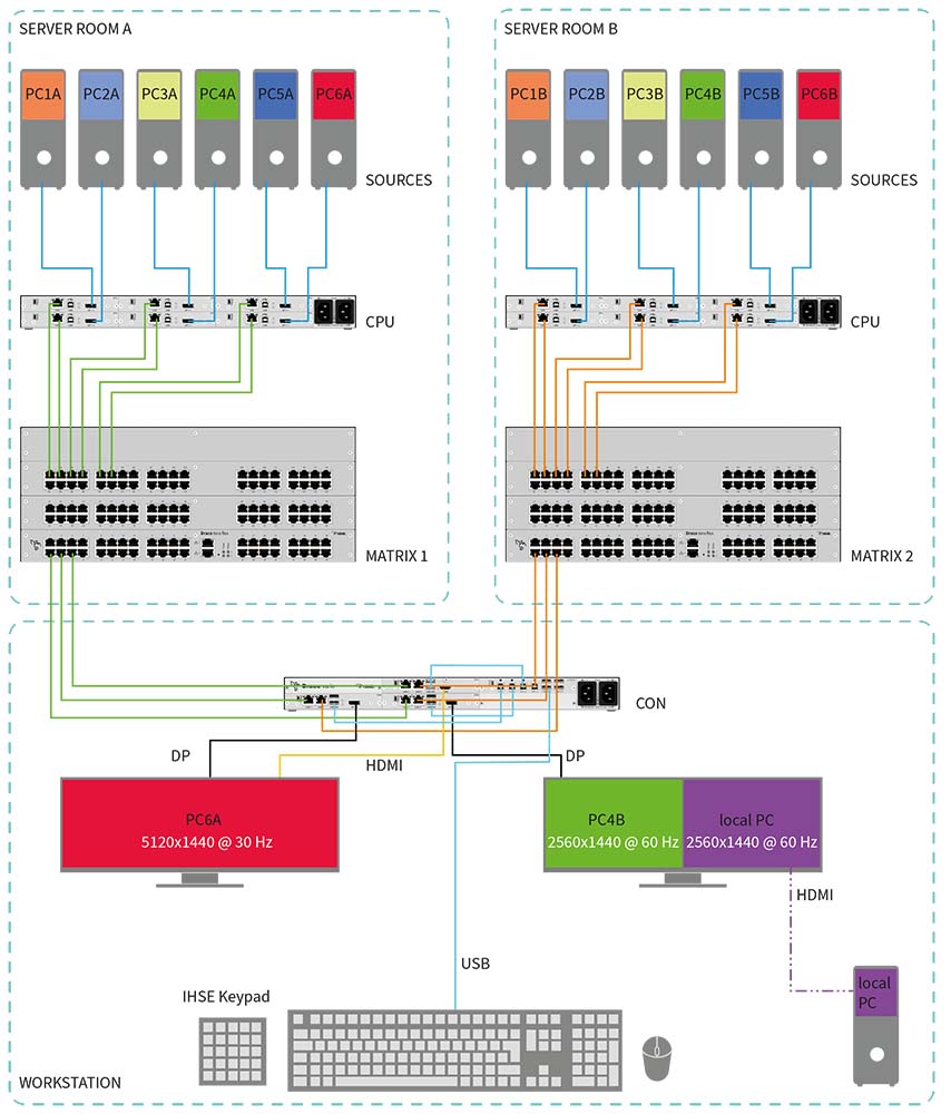 An IHSE Draco tera enterprise KVM matrix system was integrated into the control room system architecture to provide connectivity and switching of data feeds to the operators responsible for maintaining the power network on a continuous daily basis.