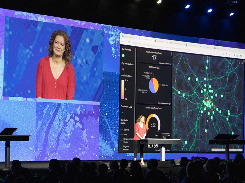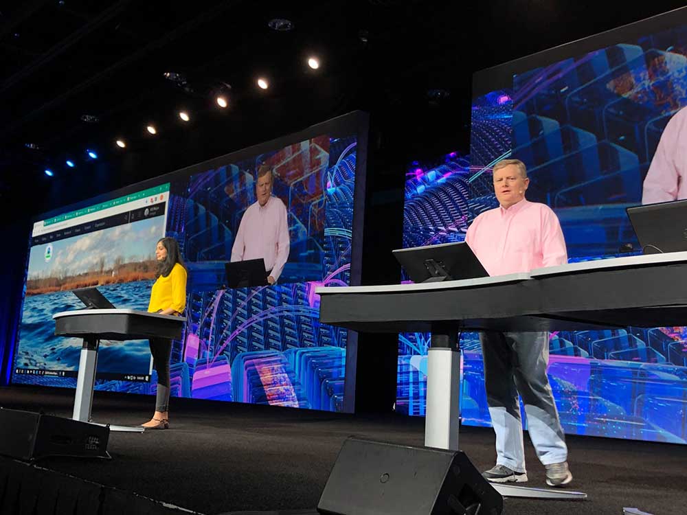 The ESRI team produces several large-scale corporate Plenary events every year – with attendees from 250 to close to 20,000. Each of these events include live, technical demonstrations on a large stage, driven on computers more than 100 feet away in a backstage area.
